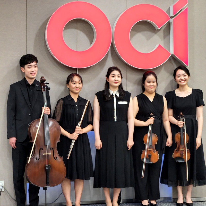 OCI 드림앙상블은 (사)서울나눔뮤직그룹(음악감독 배재영)의 자문을 받고 있는 OCI자회사형 장애인 표준사업장 OCI드림 소속의 직업 클래식 앙상블입니다. 뛰어난 역량을 가지고 있는 각각의 멤버들은 전문연주자들의 코칭과 협업으로 각자의 예술적 역량을 넓히고 있으며, 안정된 직업을 바탕으로 사회인으로서의 역할을 다하고 있습니다.
